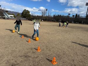 ミニゲームでは、声を掛け合いながらボールをつなぎ、最後まであきらめずにプレーする様子がとても印象的でした。